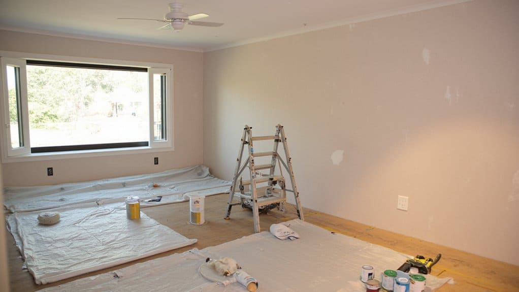 While calculating the cost to paint a bedroom, don’t overlook the additional expenses that can add up quickly beyond just paint and labor. You’ll need to account for tools and materials that guarantee a quality job on your 10×12 space.