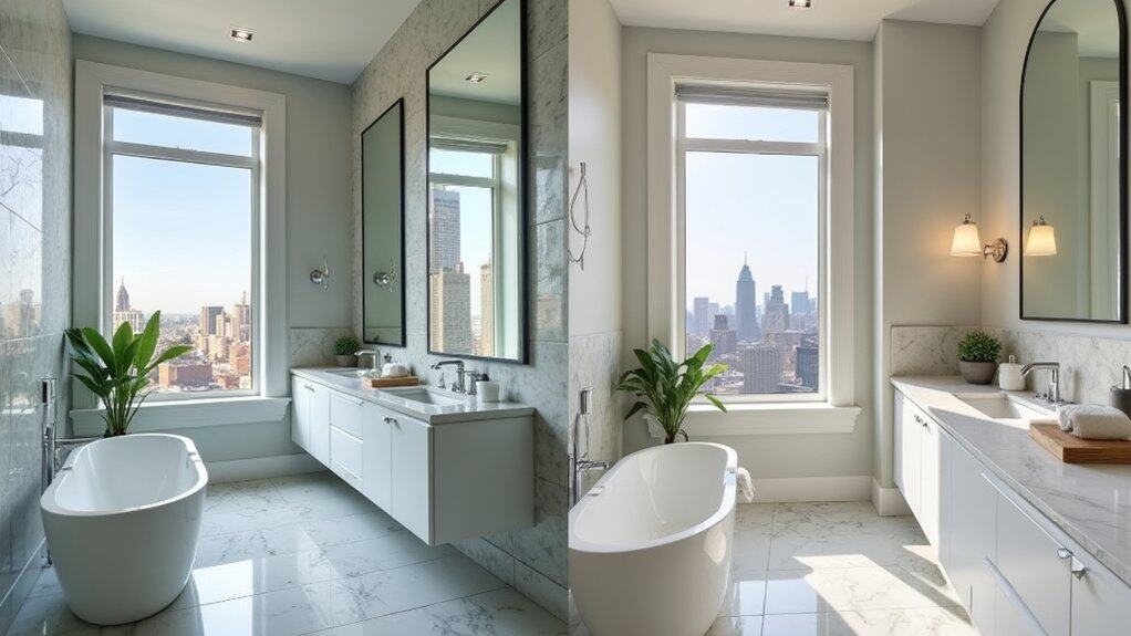 Ever thought about how a bathroom update can boost your home’s worth? You’re making a smart move by considering it. A mid-range remodel, costing around $20,000, often adds $12,000 to $14,000 in value within 6-8 months. As expert designer Jane Smith says, “Focus on timeless fixtures for lasting appeal.” Want to know the best design tricks? Stick around for practical tips to maximize your investment!
