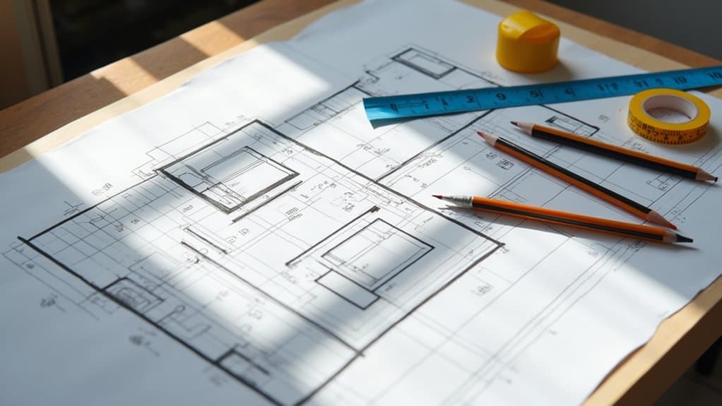 Let’s plunge into designing your basement bathroom floorplan with a clear, step-by-step approach to guarantee everything fits. A well-thought-out layout saves space and hassle in a typically tight area.