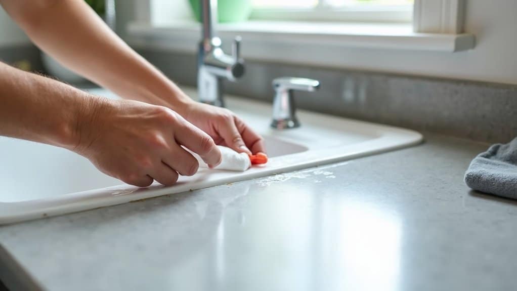 2. Clean the sink edges and countertop joint; verify it’s dry.