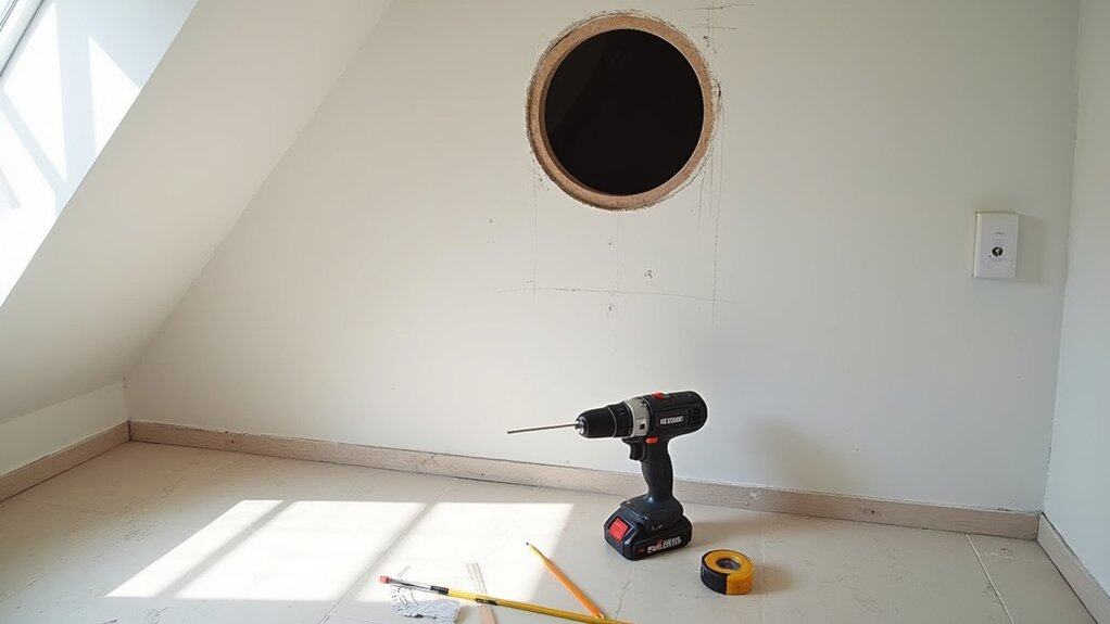 After mapping out the perfect spot for your bathroom exhaust fan, it’s time to grab your tools and cut the vent hole. This step’s essential, so let’s get it right.