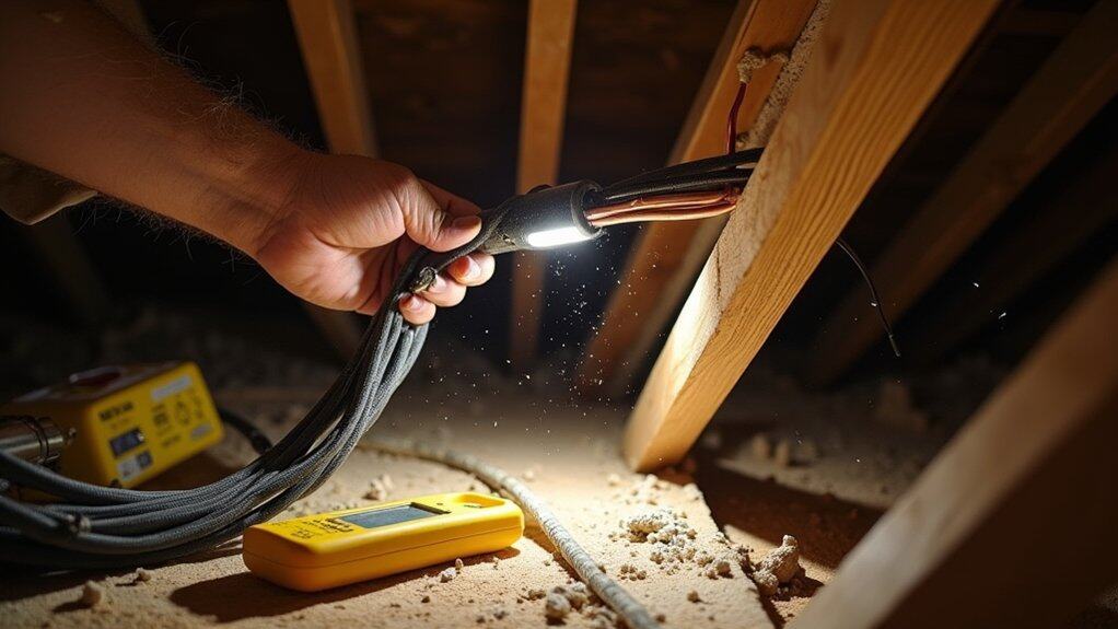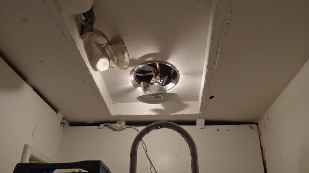 Once you’ve cut the vent hole, it’s time to tackle the electrical wiring for your bathroom exhaust fan. This step’s essential for safety and function, so let’s get it right.