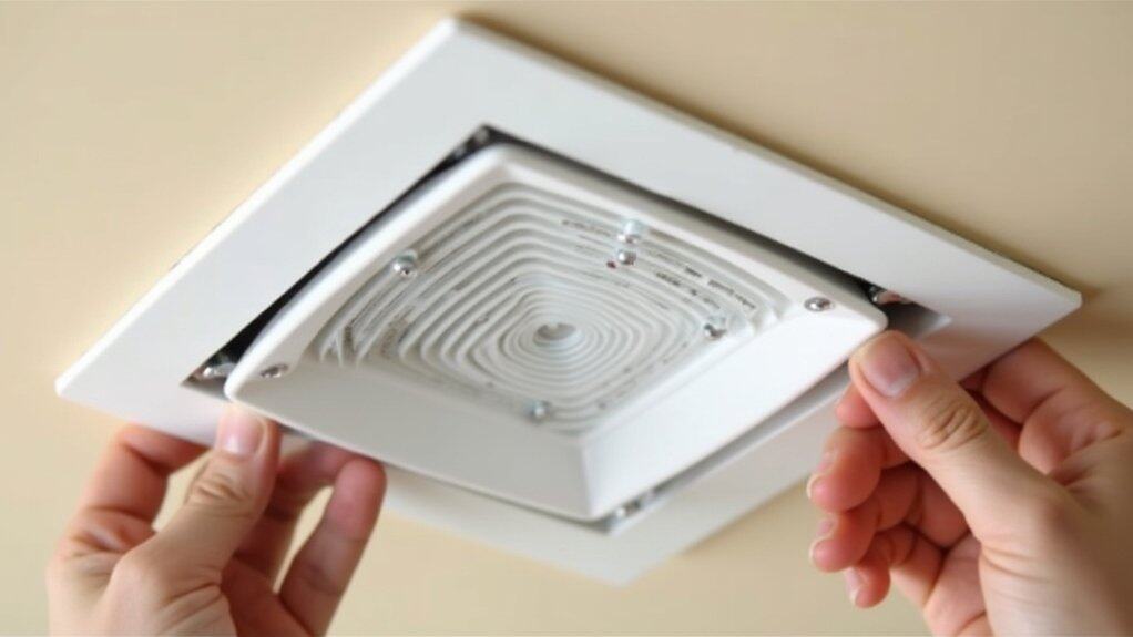 Begin by preparing to attach the fan cover to complete your bathroom exhaust fan installation. This final step guarantees safety and looks neat.