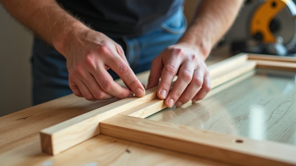 - Cut the trim with a miter saw for clean 45-degree corners.