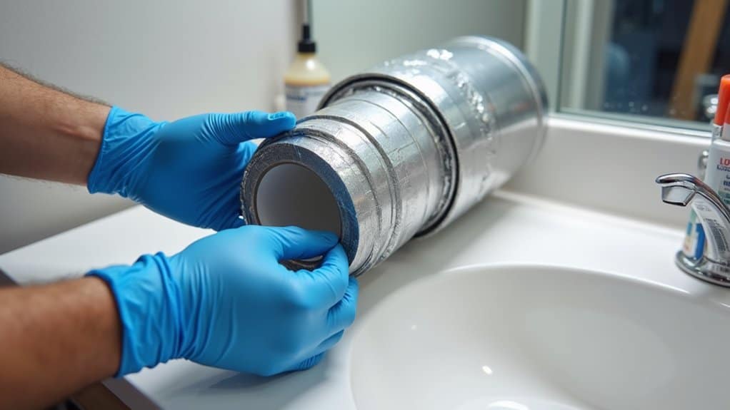 Before you wrap up your bathroom ventilation project, let’s tackle sealing the duct connections to prevent leaks. Properly sealed ducts guarantee efficient airflow and protect against moisture damage in your bathroom.