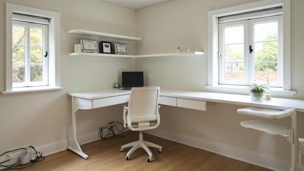 Setting up a corner desk in a bedroom with two windows can transform your space into a functional haven. Position your desk in the corner between the windows to maximize natural light and save floor space for other furniture. With a desk about 48 inches wide and 24 inches deep, you’ll have ample workspace without crowding the room.