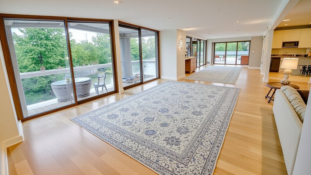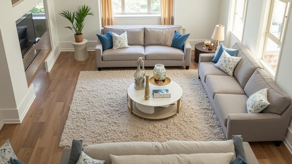 - Include a 4×6 rug beneath occasional furniture to create a secondary seating area