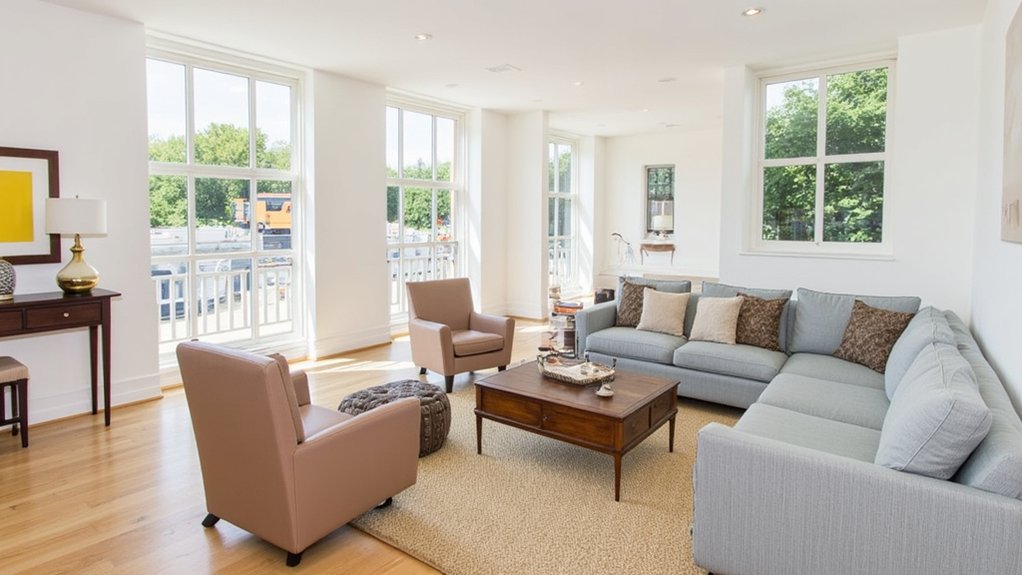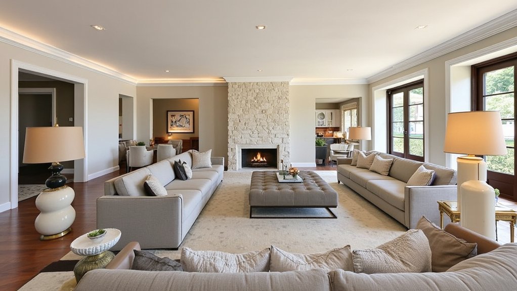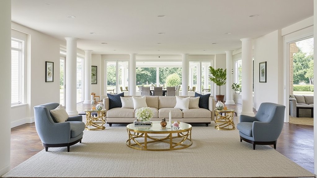 Just like a blank canvas awaits an artist’s vision, your long living room holds endless potential for creative furniture arrangement. You’ll need to think strategically about traffic flow, focal points, and functionality to transform this challenging space into a well-balanced haven. Interior designer Sarah Mitchell notes, “The key is creating distinct zones while maintaining visual harmony.” Let’s explore proven techniques that’ll help you maximize your room’s layout and create an inviting atmosphere.