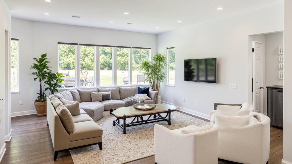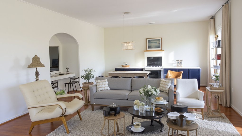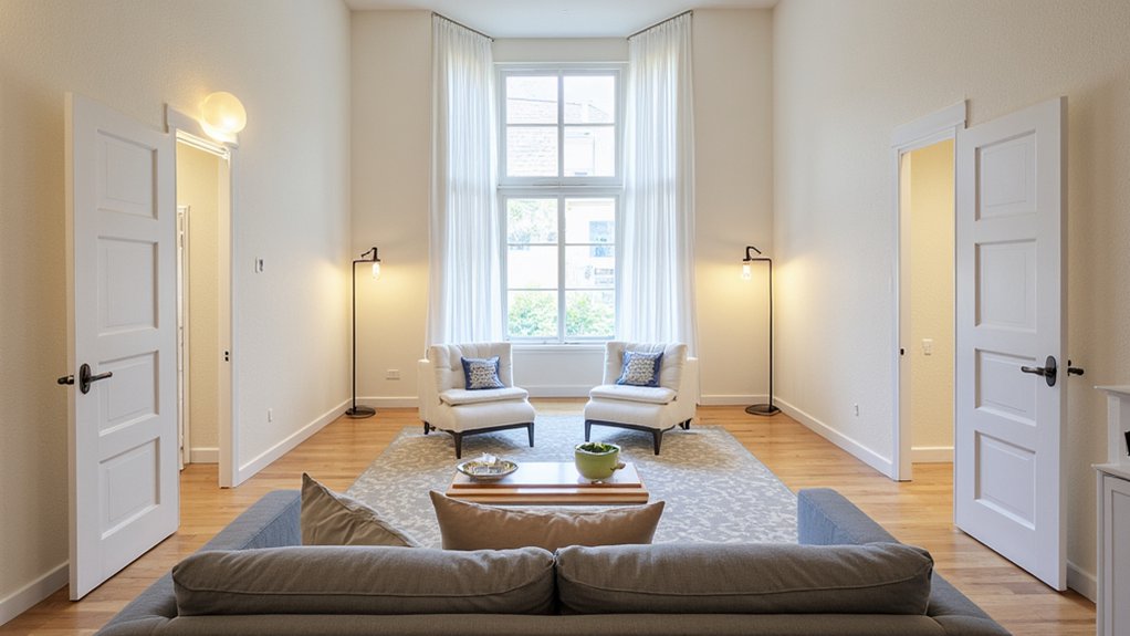 When you’re faced with arranging a living room that has two entrances, you’ll need a strategic approach to create both flow and function. Interior designer Sarah Thompson explains, “The key is treating your dual-entrance living room like a pathway system while maintaining comfort and style.” You’ll want to map out traffic patterns first, measure your space precisely, and consider how furniture placement impacts movement – but there’s much more to creating the perfect layout.