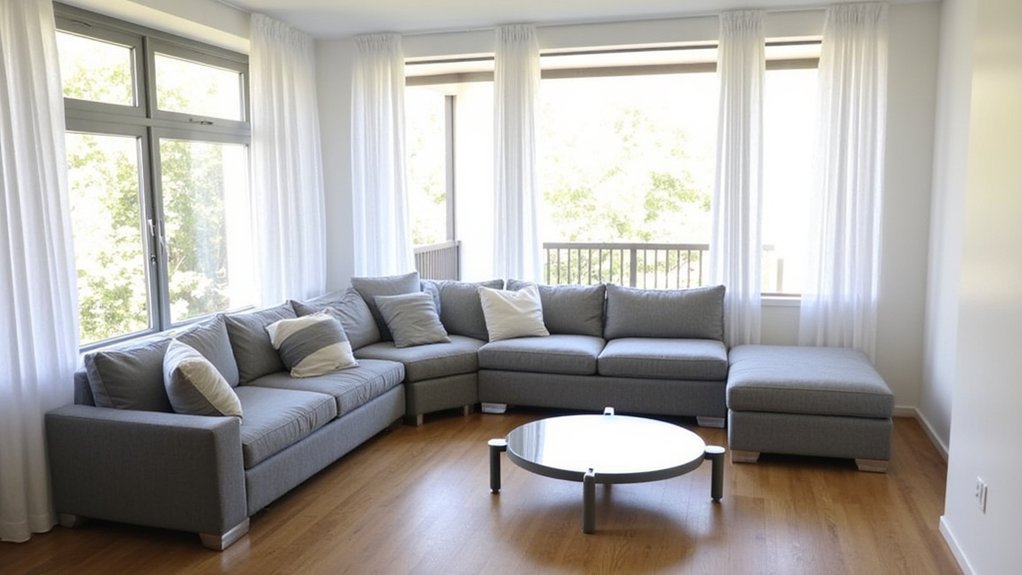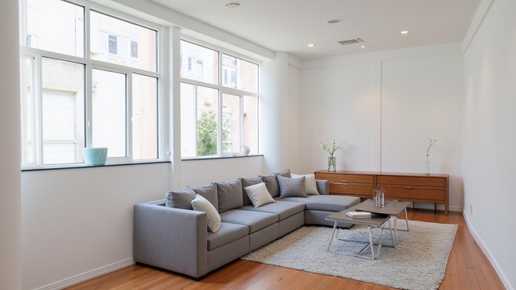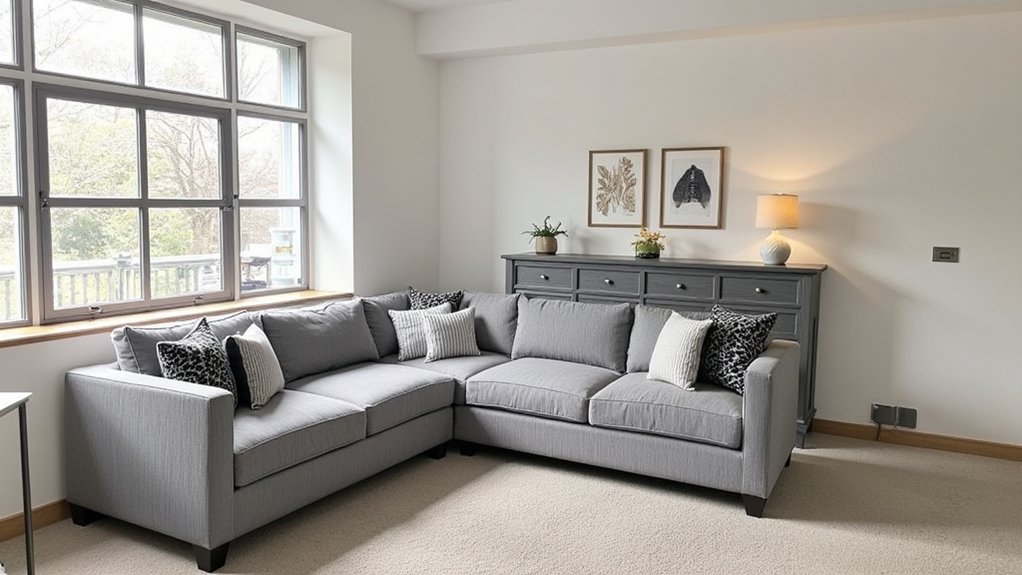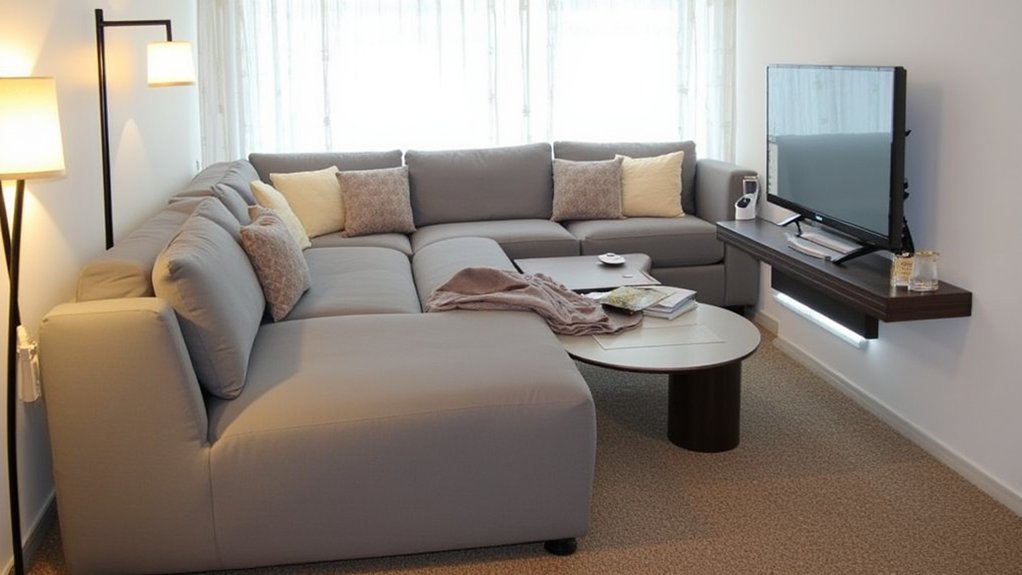 According to interior design experts, 68% of homeowners struggle with furniture placement in small living rooms, particularly when it comes to sectionals. You’ll want to maximize every inch of your compact space while maintaining an inviting flow and functionality. From measuring walls properly to creating strategic L-shapes near windows, there’s a science to positioning these larger pieces effectively. Let’s explore proven techniques that’ll help you transform your cozy living area into a well-arranged haven.