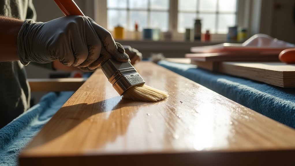 - Apply a polyurethane finish using a 2-inch brush, coating evenly in thin layers.