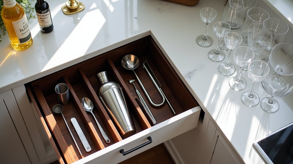 - Bar Tools: Grab a 6-piece set including a shaker, jigger, and strainer. Place them in a 12-inch drawer.