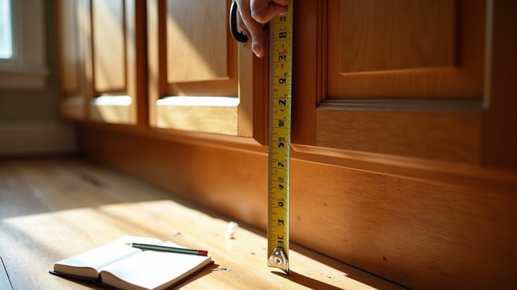 Several key steps will guide you in measuring your kitchen cabinets to build a functional bar. Grab a tape measure and notebook to start this vital process. Accurate dimensions guarantee everything fits right.