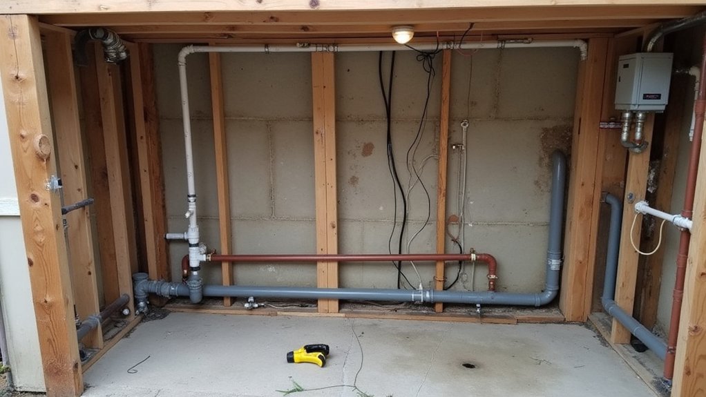 - Install Pipes/Wires: Route water lines (½-inch pipes) and electrical conduits (12-gauge wire) within 24 hours under metal studs for protection.