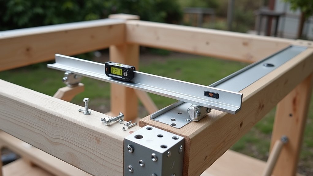 - Attach L-brackets every 24 inches using 1-inch screws; confirm they’re level.
