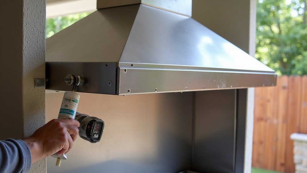 Before you fire up that grill, let’s tackle installing a ventilation system to keep your outdoor kitchen safe and comfy. Proper ventilation prevents smoke buildup and guarantees fresh air while cooking.