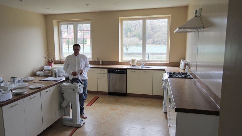 Before you pick your kitchen flooring, think about how your daily life shapes your needs. Your kitchen’s a high-traffic zone, so match the flooring to your routine. Got kids or pets? You’ll need durable, scratch-resistant options like porcelain tile, which handles spills and lasts over 20 years.