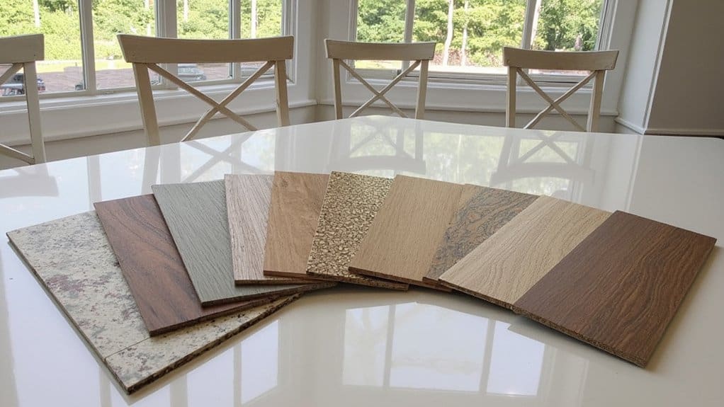 Moving from evaluating your kitchen’s needs, let’s focus on picking the right flooring material for your space. Your choice sets the tone for style and function, so consider these options carefully.