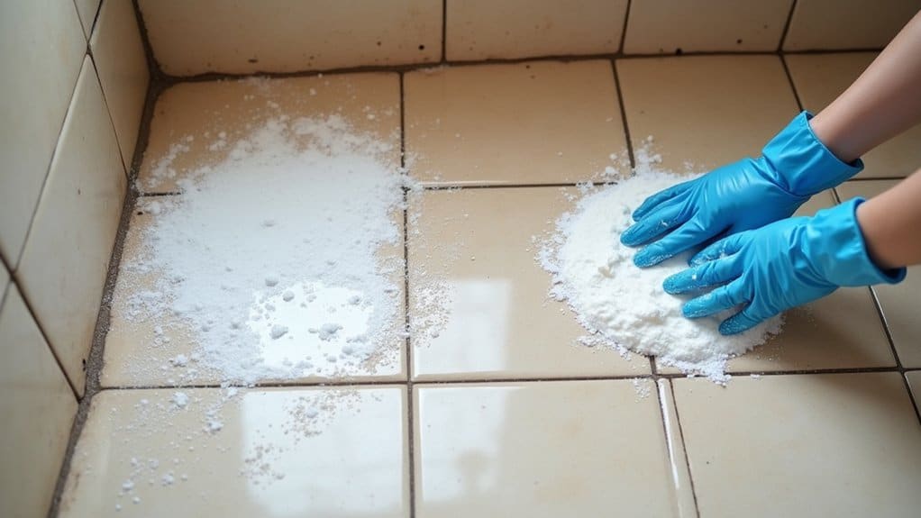 - Scrub gently for 5-10 minutes, focusing on grout lines.