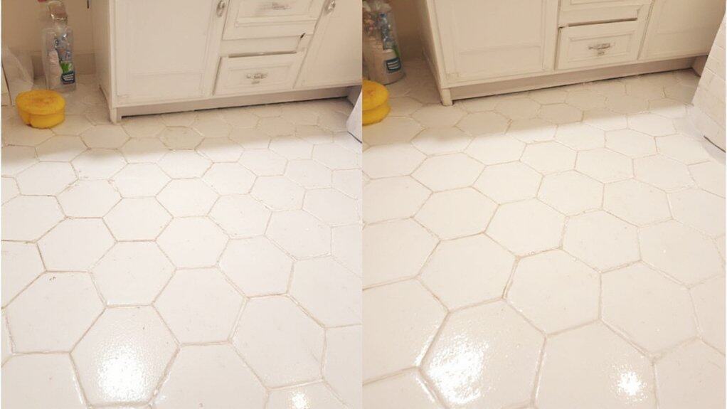 Cleaning your bathroom tile floor doesn’t have to be a chore if you’ve got the right approach. Start by understanding how often to clean—daily sweeps and weekly mops keep grime at bay. You’ll need basic tools and simple solutions to tackle dirt effectively. As expert cleaner Jane Smith says, “Consistency with a mild detergent prevents stubborn buildup.” Curious about the best methods and materials? Stick around for practical steps to make your floor shine.