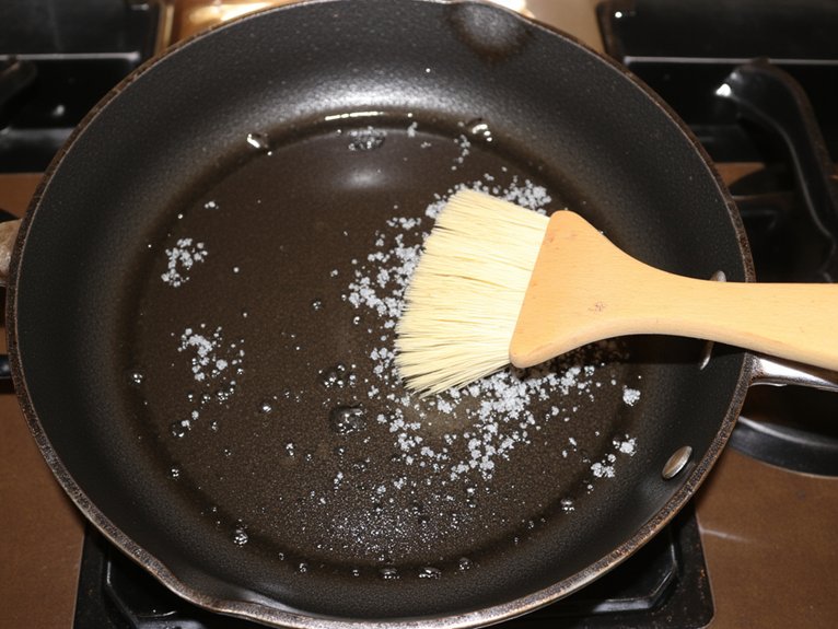 A rusty cast iron pan can be fully restored to its former glory through proper cleaning and reseasoning techniques. For effective rust removal, start by scrubbing the affected areas with steel wool until bare metal is visible. Then follow these steps: