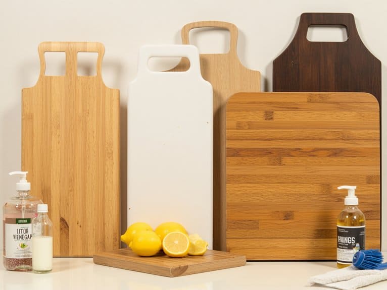 Selecting appropriate cleaning products for each cutting board material guarantees proper sanitization and longevity of the surface. Different materials require specific cleaning supplies and disinfecting agents for ideal care: