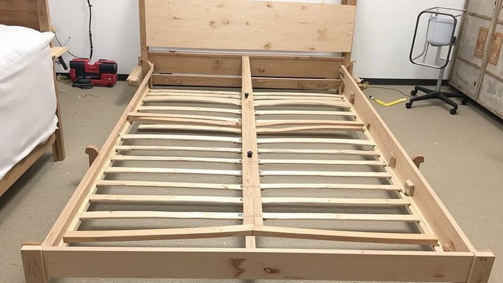Ever wonder how much your bed can handle? You’ll find most converted frames maintain a weight capacity of 500-1000 pounds when properly reinforced, but it’s essential to check structural integrity before making changes.