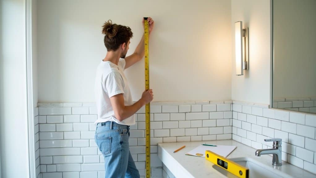 If you’re tired of outdated bathroom tiles, covering them with wainscoting can transform your space affordably. Start by grabbing a tape measure to assess your wall area—most bathrooms need panels up to 36 inches high. “Precision in measurement prevents costly errors,” says home improvement expert Jane Carter. Here’s the plan: measure, choose a style, and prep. Want to know the exact steps to nail this project? Stick around for the full guide.