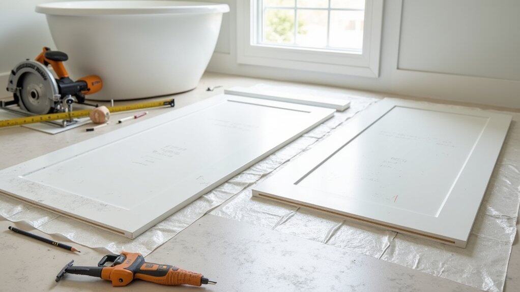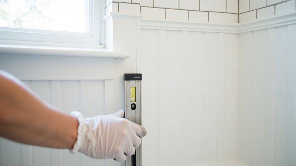 Grab your tools and let’s plunge into cutting wainscoting panels to fit your bathroom walls perfectly. Precision’s key here, so follow these steps.