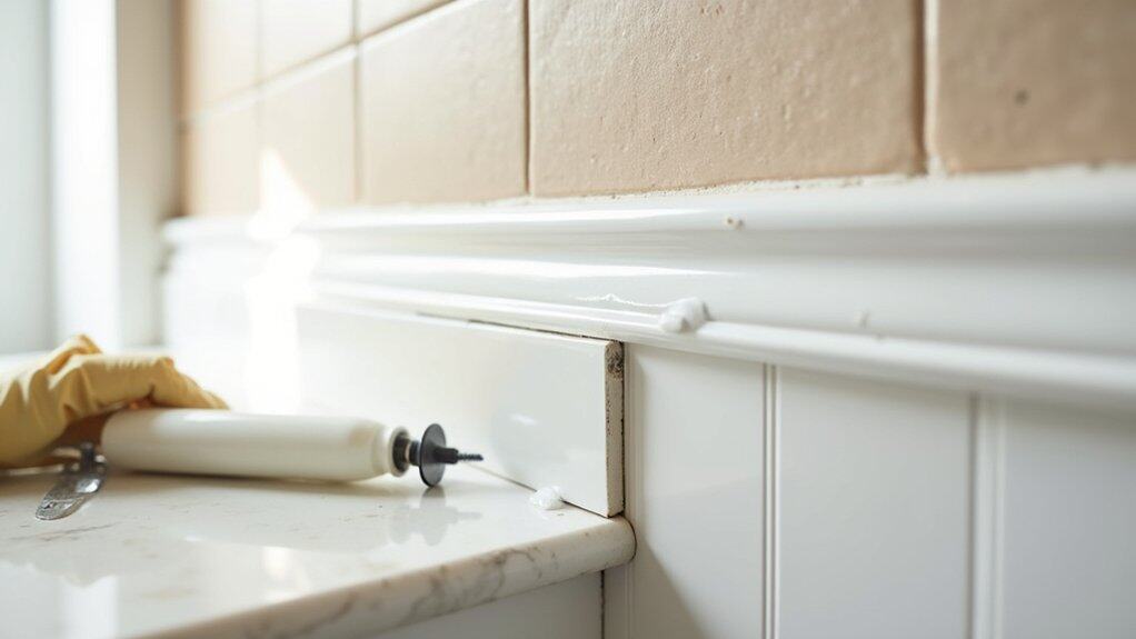 “Caulking prevents water damage,” notes contractor Lisa Reed. Work carefully to keep edges neat and protected.