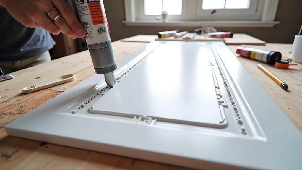Dive right into securing your wainscoting panels with adhesive to guarantee a lasting hold on those bathroom walls. You’ve cut the panels; now let’s stick them tight with these clear steps.