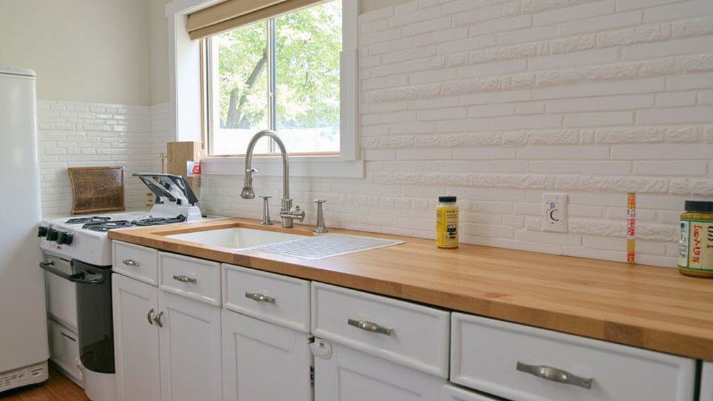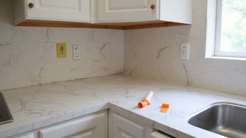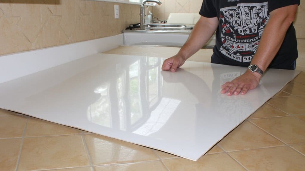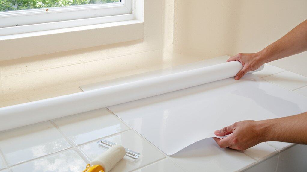 Several key steps will guide you through applying laminate sheets to refresh your kitchen tile countertops with ease. You’re transforming that old surface into something sleek, and it’s simpler than you’d think with the right approach.