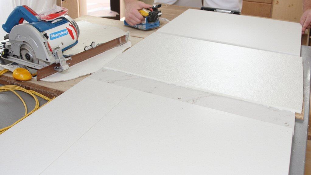- Cut Sheets: Trim quartz sheets using a circular saw, taking about 30 minutes.
