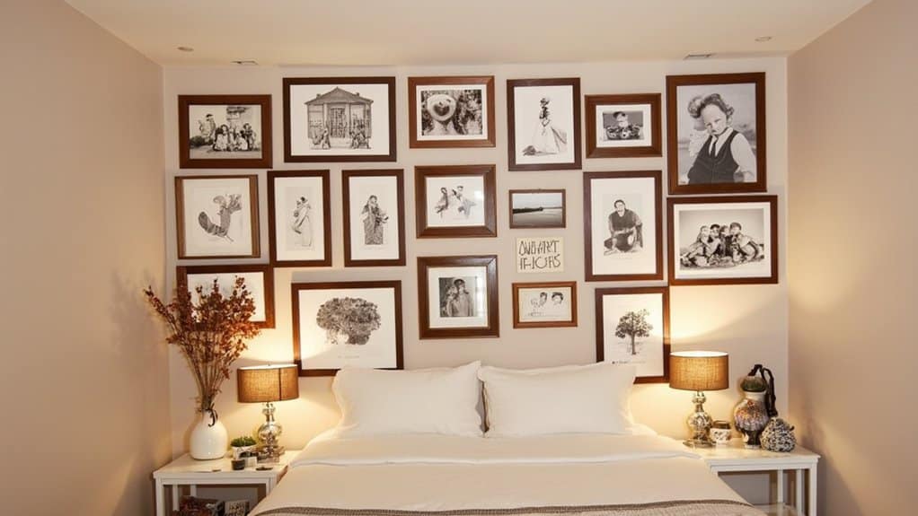 As you refine the personal touches in your bedroom, consider enhancing the mood with the warm glow of scented candles. They’re an easy way to create a cozy, inviting space. Place them strategically around your room for maximum effect, ensuring safety first.