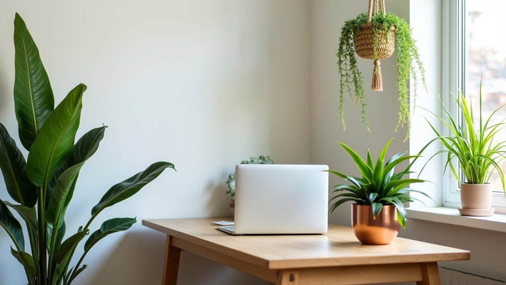 Beyond managing sound, creating a healthy workspace environment calls for good air quality. Place these proven air-purifying plants strategically around your living room office: