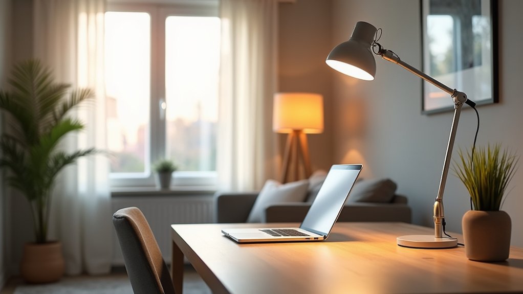 You’ll start your living room office setup by carefully measuring the entire room and identifying a corner that gets good natural light while staying away from high-traffic areas. Next, you’ll need to plan your lighting strategy, including task lighting for your desk and ambient lighting to prevent eye strain during evening work hours. Finally, you’ll want to select and arrange your furniture and storage solutions strategically – starting with an ergonomic desk and chair that fit your measurements, then adding shelving or cabinets that maximize vertical space while maintaining the room’s flow.