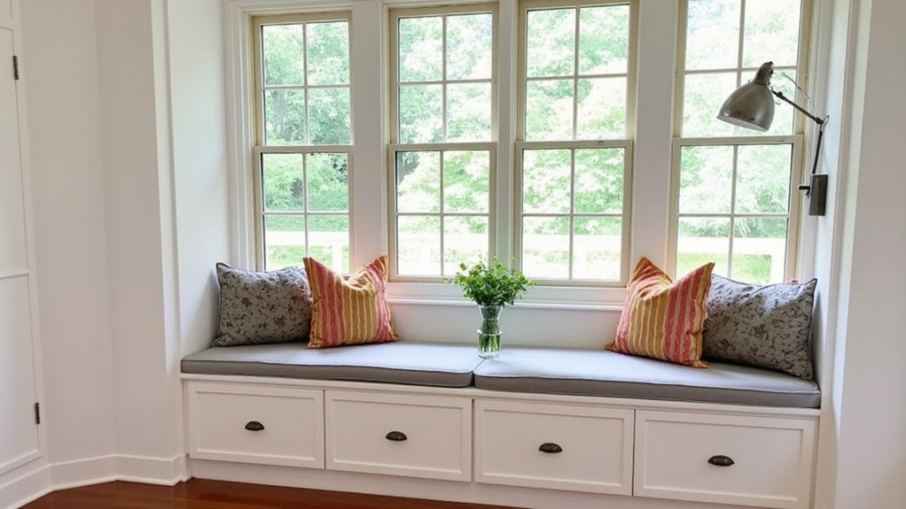 - Add 3-4 inch thick cushions in fabrics that complement your room’s color scheme