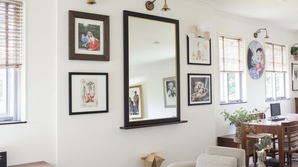 - Install multiple smaller mirrors (18-24 inches) in a symmetrical arrangement to break up wall monotony