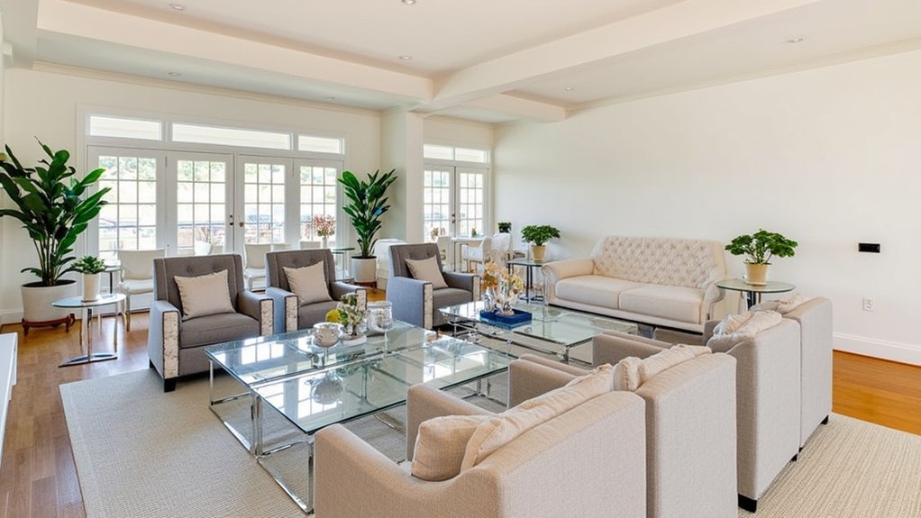 - Fill in gaps with smaller decor pieces like floor lamps and plants, maintaining clear pathways of at least 36 inches