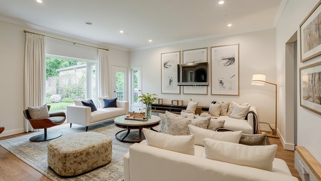 Decorating a long living room presents unique challenges, but you’ll discover it’s an opportunity to create multiple functional zones in one space. Interior designer Sarah Collins explains, “Think of your long room as a series of connected vignettes rather than one overwhelming space.” You’ll need to contemplate furniture placement, lighting strategies, and visual tricks to make the room feel balanced and welcoming. Let’s explore the essential techniques that transform awkward layouts into purposeful, stylish spaces.