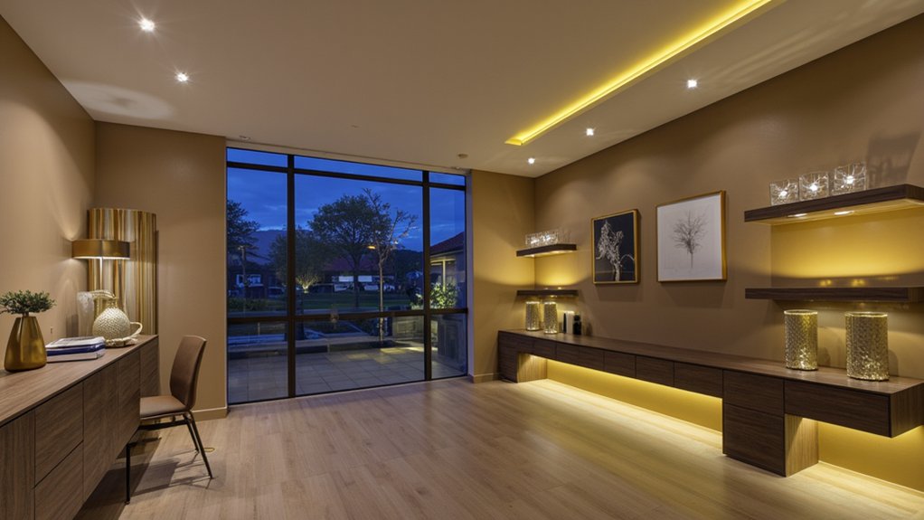 - Use LED strip lighting under shelving or behind artwork to create ambient pools of light at 2700-3000K warmth