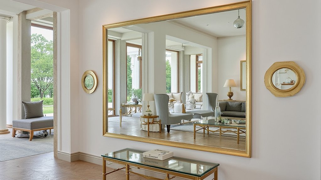 - Place an oversized decorative mirror above your fireplace or console table at eye level (57-65 inches from the floor)