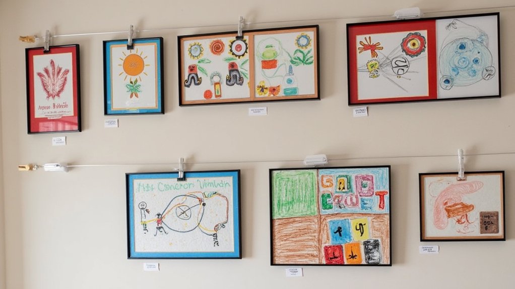Creating an art gallery wall transforms any playroom into a vibrant showcase for your children’s creative masterpieces. To build an engaging display that grows with your child’s artistic journey, consider these essential steps: