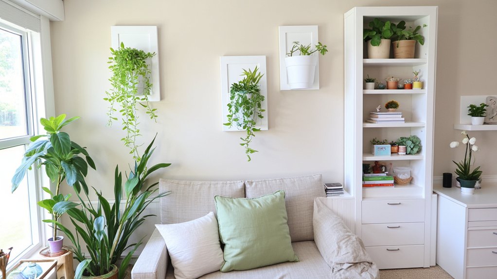 - Mount wall planters with trailing pothos to add dimension without cluttering surfaces