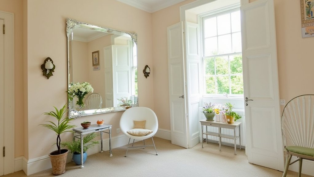 - Install mirror panels on one focal wall, keeping them 6 inches apart for a modern gallery effect