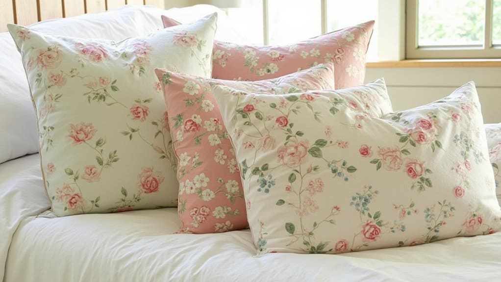 Brighten your bedroom with floral accent pillows that add a pop of nature-inspired charm to your space. These pillows can transform your bed or chair into a cozy, stylish spot in just minutes.