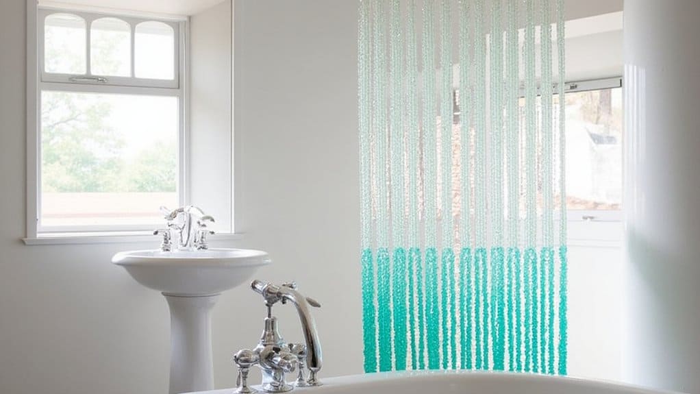 Creativity shines when you add a beaded curtain separator to define spaces in your old bathroom. It’s an easy, stylish way to section off areas without walls. Hang it in about 30 minutes to separate your tub from the rest of the room.