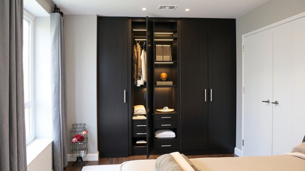 A midnight wardrobe closet can transform your bedroom with its bold, dark elegance and practical storage. You’re adding a statement piece, often 6 feet tall and 4 feet wide, that holds clothes efficiently. Place it against a light wall for contrast, taking about 2 hours to assemble.
