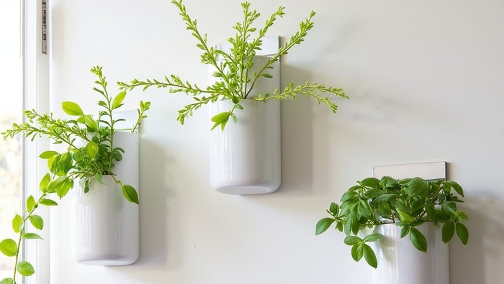 While transforming your kitchen walls, why not add a touch of green with hanging herb planters? They’re a practical way to bring life into your space. You’ll need small planters, about 6 inches in diameter, and sturdy wall hooks.