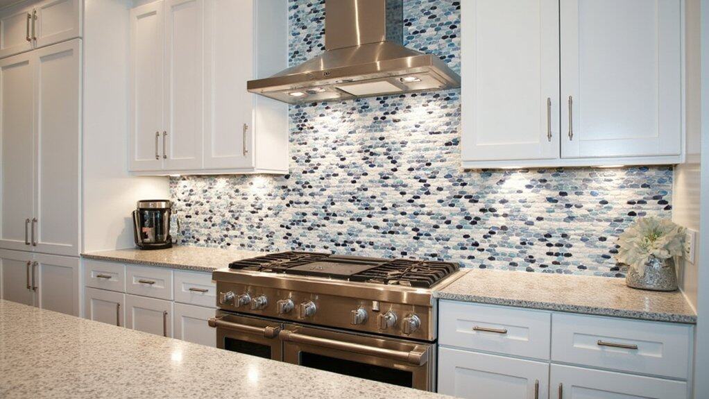 Ever wondered what can transform your kitchen walls into a stunning focal point? A tiled mosaic backsplash can do just that! You’ll create a unique, eye-catching design behind your stove or sink, typically spanning 18 to 24 inches high. Start by planning your pattern and gathering materials.
